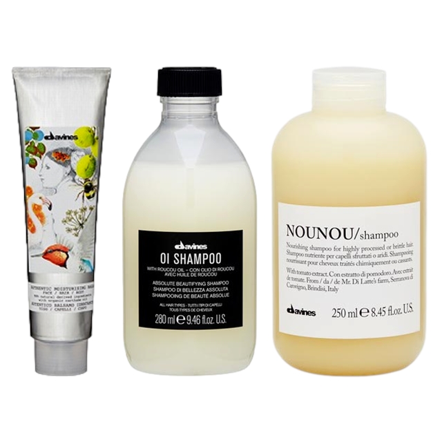 Davines Authentic Moisturising Balm & OI Absolute Beautifying Shampoo & Nounou Shampoo (for Highly Processed or Brittle Hair) Set